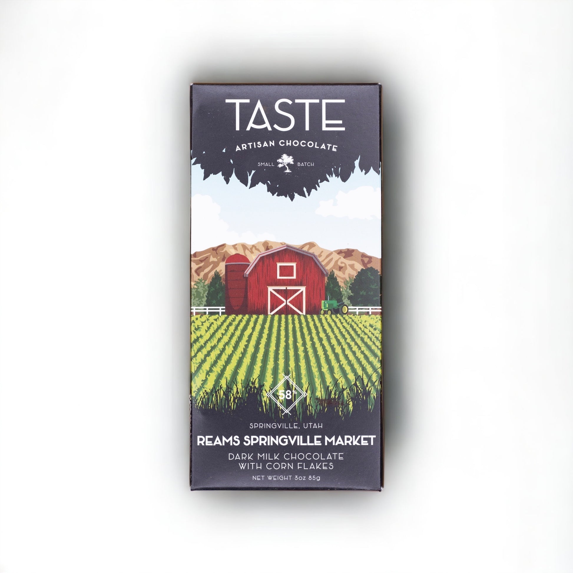 Reams Springville Market has been a staple in the local community almost as long as corn flakes, inspiring this locally-made, dark milk chocolate with real cornflakes.
